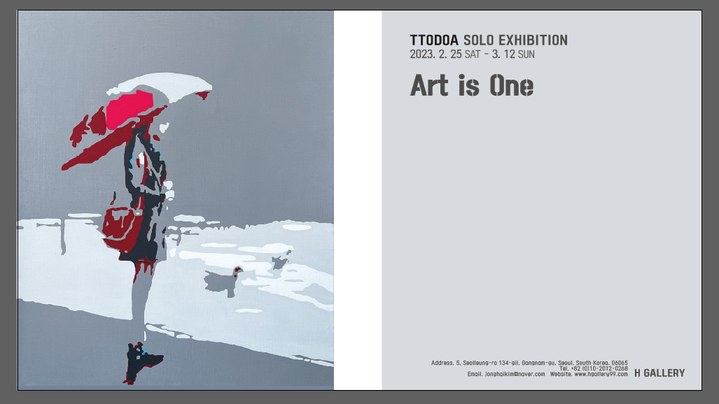 청담동 H gallery는 2023년 첫 전시로 4연속 솔드아웃 작가로 알려진 또도이즘 또도아의 9번째 개인전 ‘Art is One. 예술은 하나다’를 개최하였다. LA 아트쇼 전시를 막 마치고 2023 새봄을 알리는 이번
